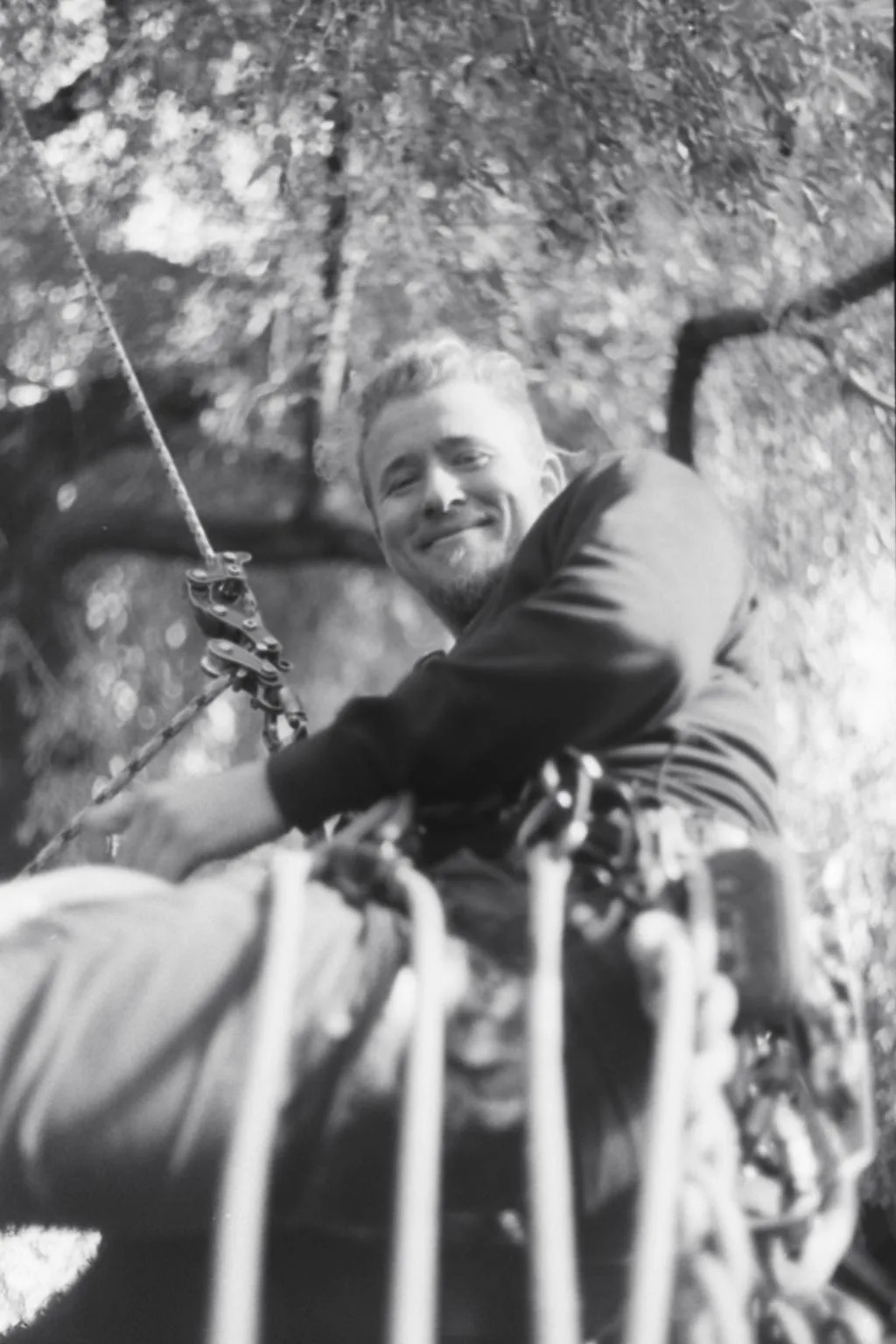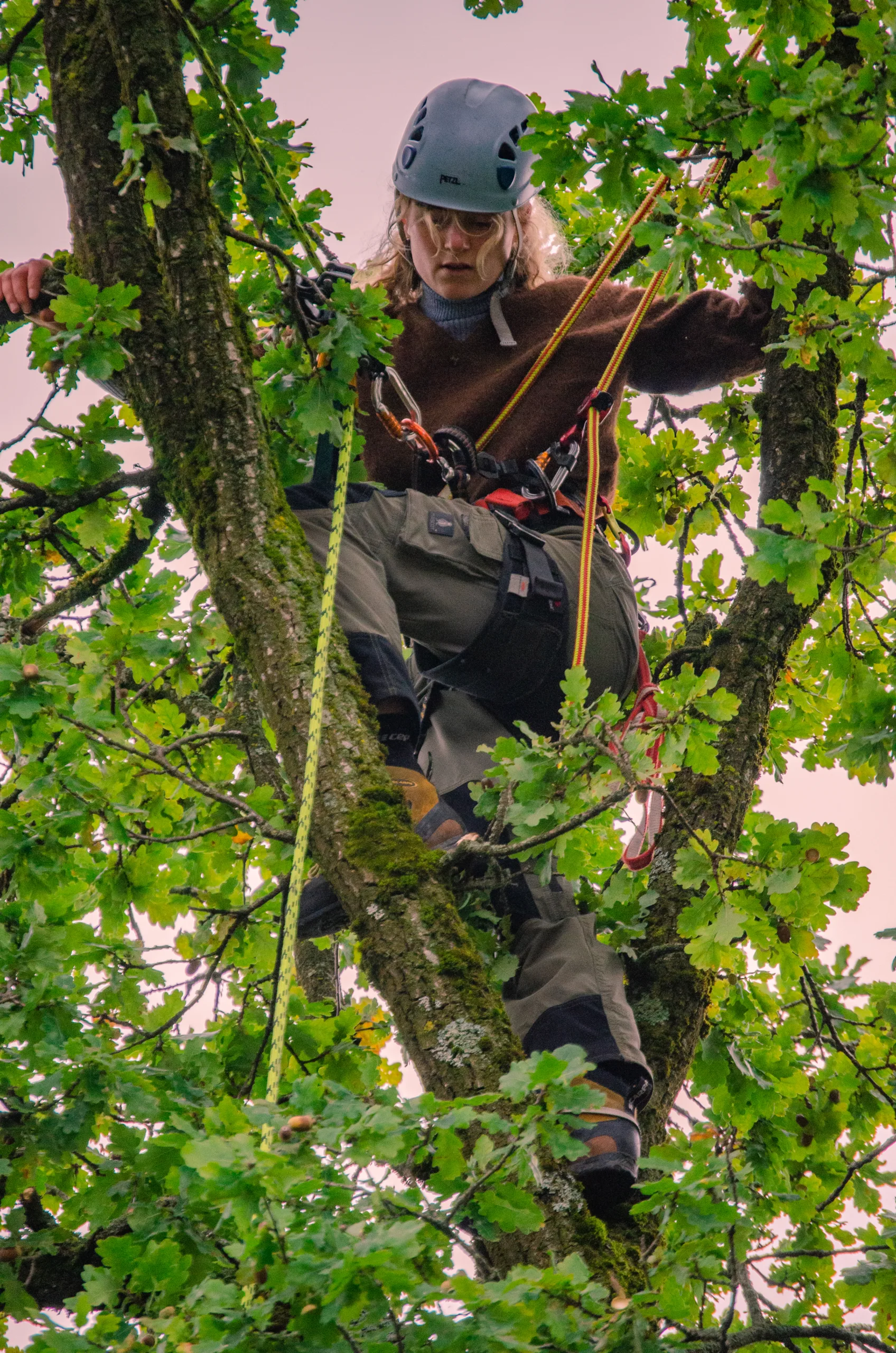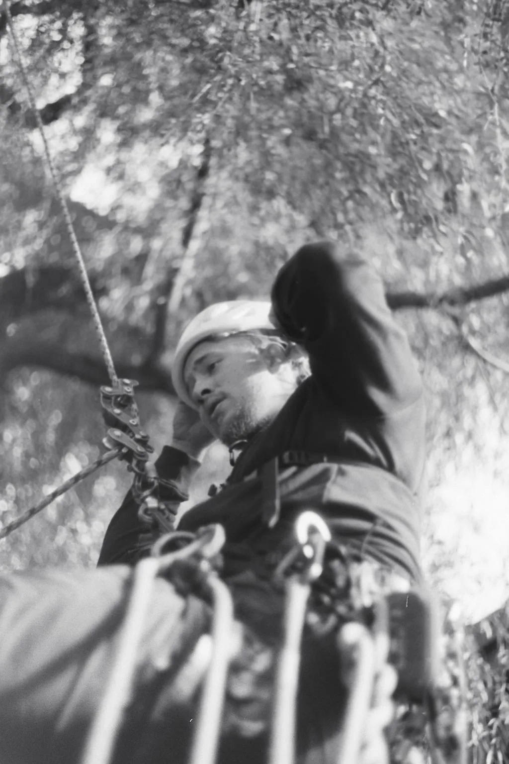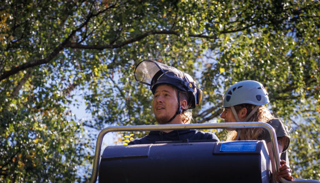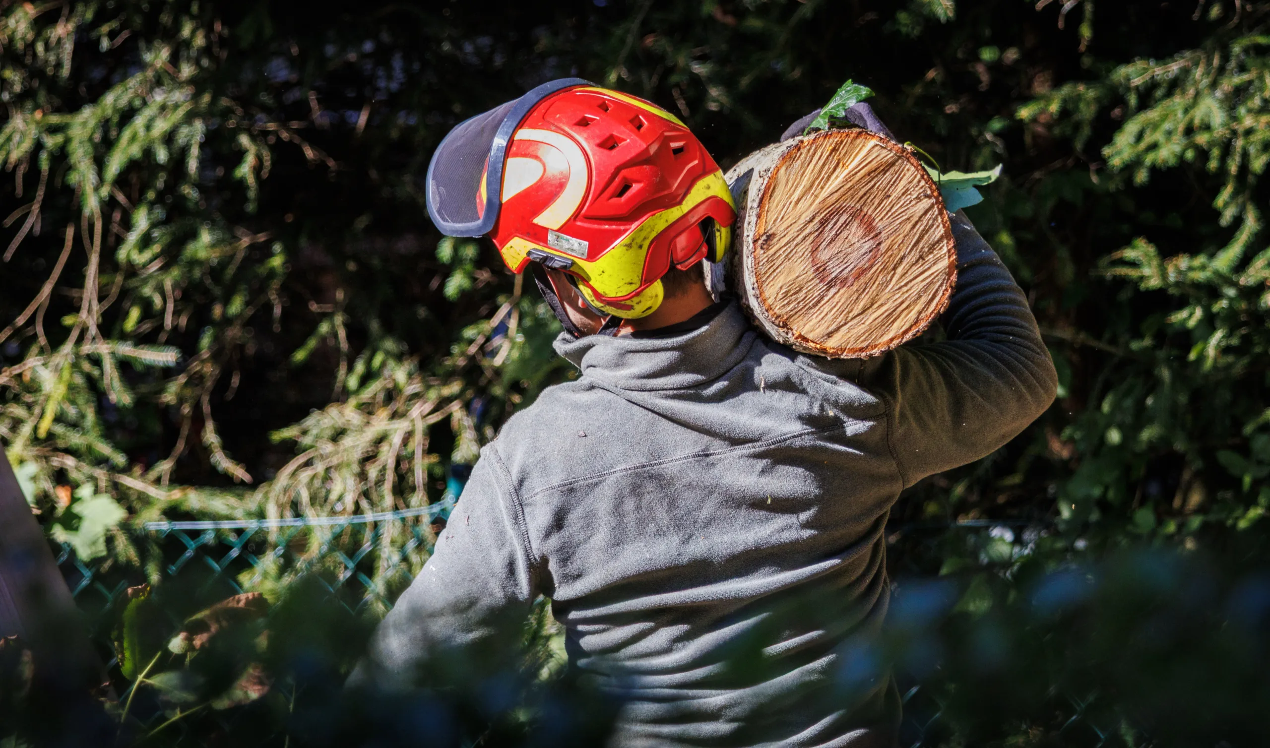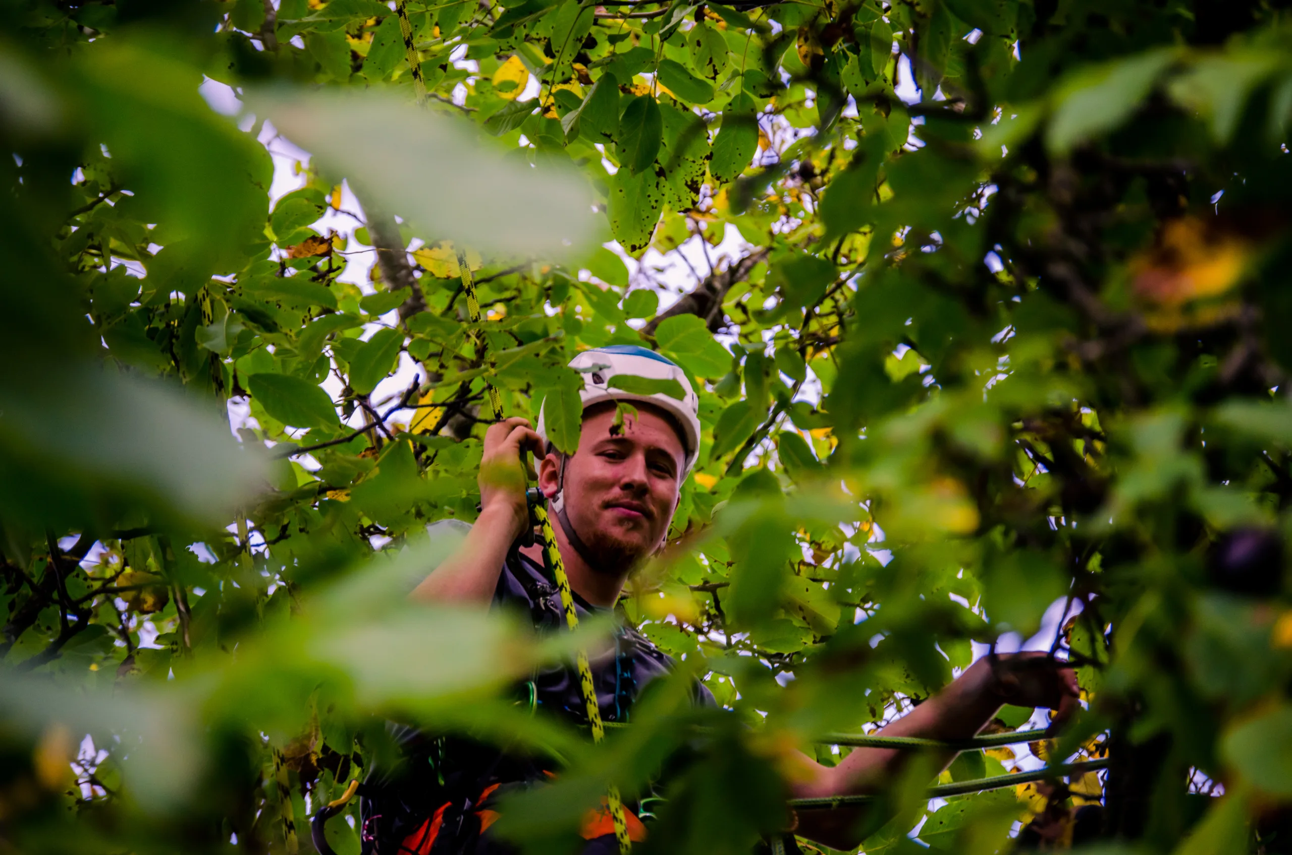 Aufgrund einer bereits fortgeschrittenen Fäule im Stammfuß sowie einer Neigung über eine Hütte, mussten wir die Esche mithilfe von Seilklettertechnik und Rigging (Abseiltechniken) Stück für Stück abtragen. Das Material wurde aus dem Grundstück geschafft, konnte dann allerdings vor Ort bleiben.