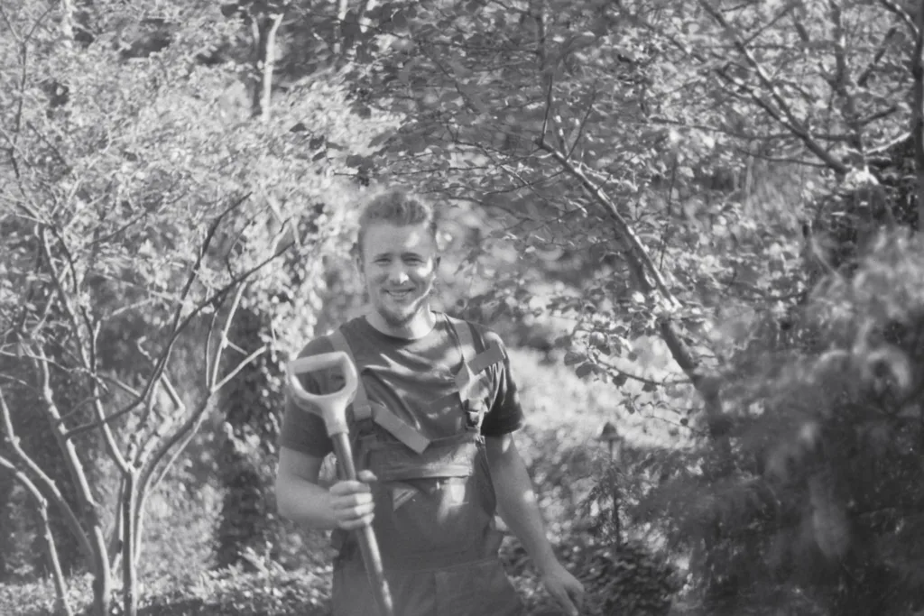 Die Weide und der Ahorn waren bereits abgestorben und wurden inkl. Wurzelstock entfernt. Das Fräsgut haben wir durch frische Erde ersetzt und auf einer Stelle frischen Rasen gesät.