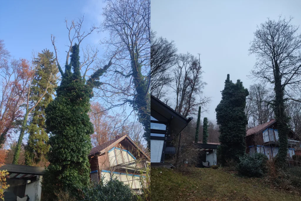 Auf Kundenwunsch haben wir aus diesem Apfelbaum den Efeu und einige tote Äste entfernt.